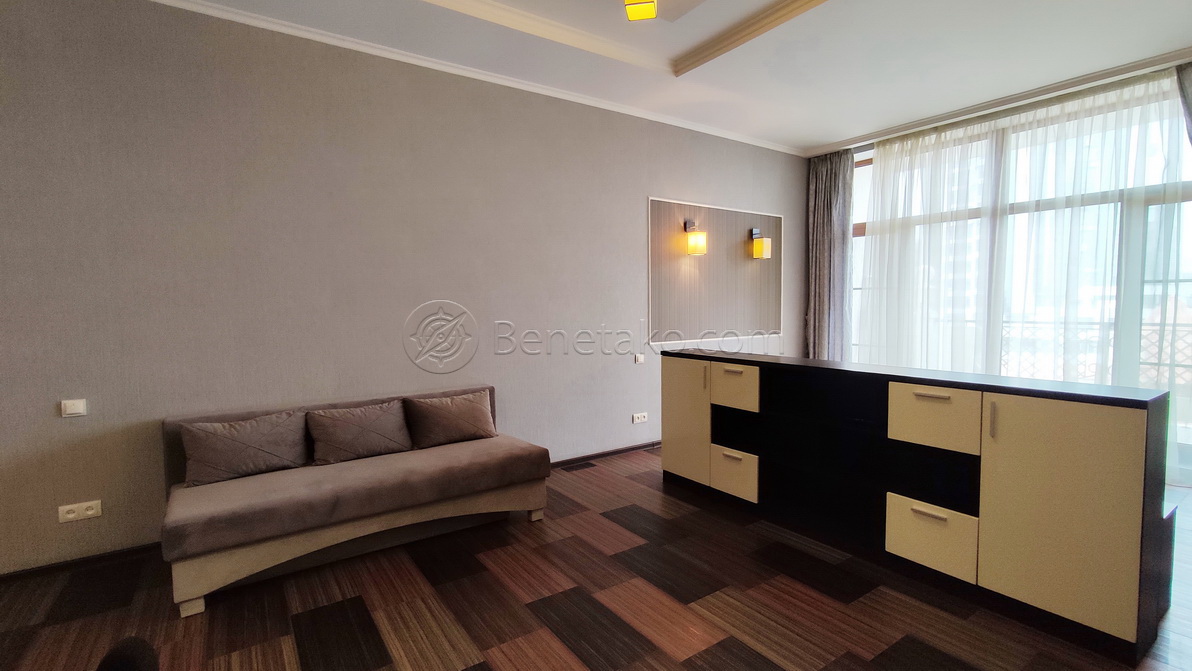 Студия в Ж/К "Аркадийский дворец", ул. Аркадийское плато, 5/3, 4/12 эт. дома, общая площадь 59 кв. м. Терраса, необходимая мебель и бытовая техника.