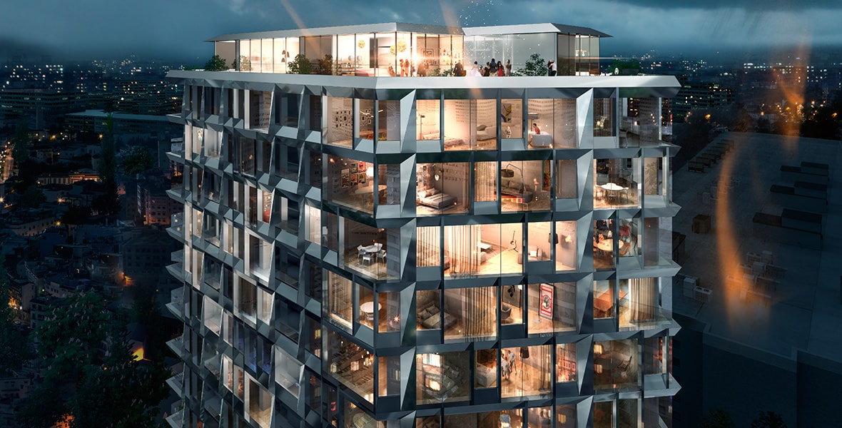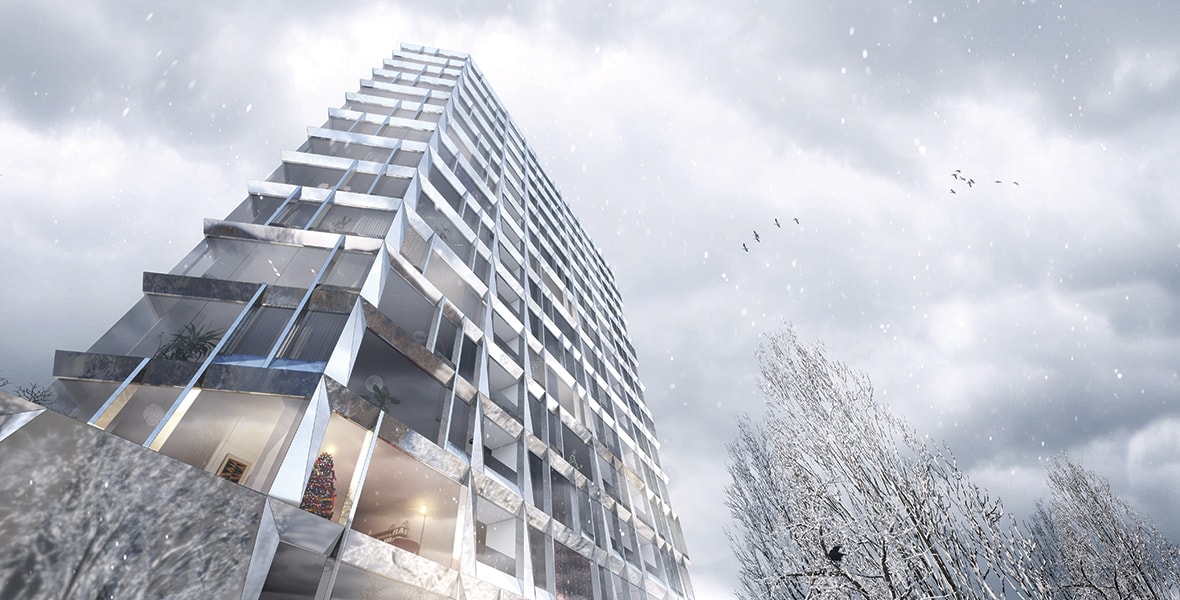 Панорамне скління зі спеціальним дзеркальним покриттям гарний вид з вікон на місто